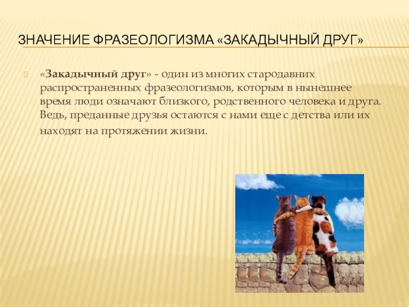 Слайд 11ЗНАЧЕНИЕ ФРАЗЕОЛОГИЗМА «ЗАКАДЫЧНЫЙ ДРУГ»