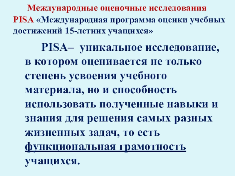 PISA «Международная программа оценки учебных достижений 15-летних учащихся»