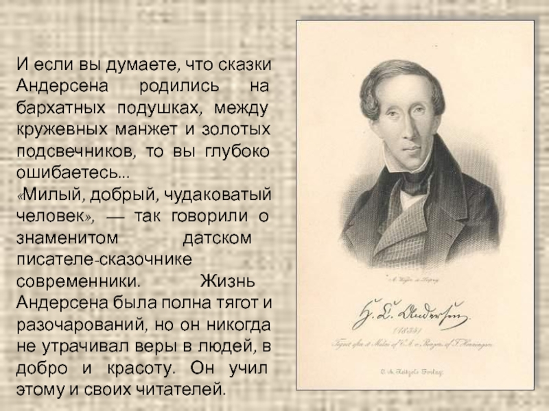 Слайд 3И если вы думаете, что сказки Андерсена родились на бархатных подушках,