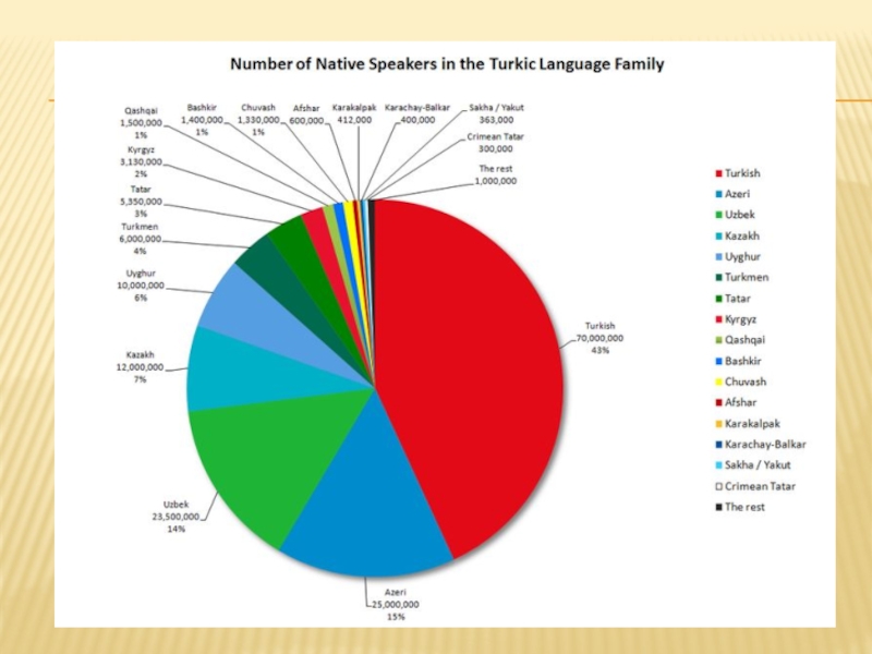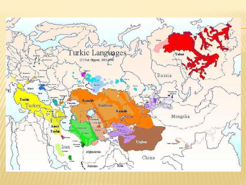Слайд 16Тю́ркские языки́ — семья родственных языков предполагаемой алтайской макросемьи, широко распространённых в
