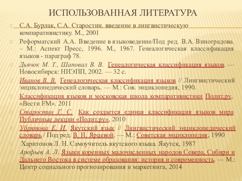 С.А. Бурлак, С.А. Старостин. введение в лингвистическую компаративистику. М., 2001