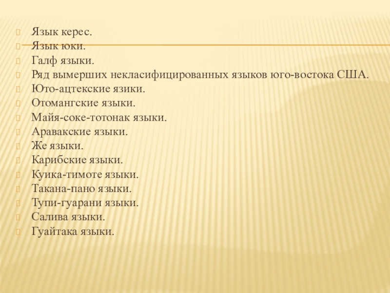 Енисейские языки. Предполагается наличие генетической связи между языками ряда только что названных групп и изолированных языков, начиная с севернокавказских.