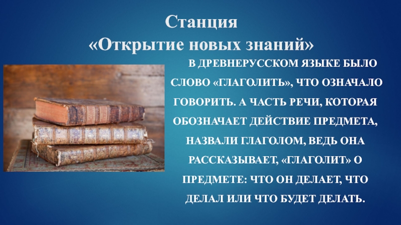 означало говорить. А часть речи, которая обозначает действие предмета, назвали глаголом, ведь она рассказывает, «глаголит» о предмете: что он делает, что делал или что будет делать.