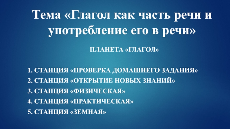 Тема урока: «Глагол как часть речи и употребление его в речи»