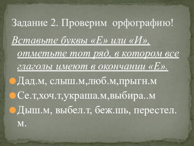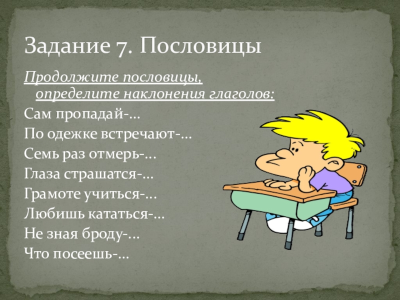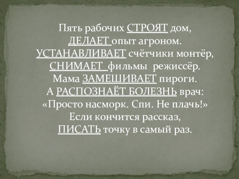 Задание 5. Из предложений выбрать и распределить глаголы по трем столбикам: