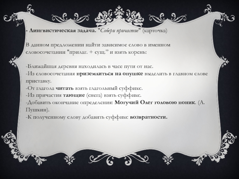 - Лингвистическая задача. "Собери причастие" (карточка)
