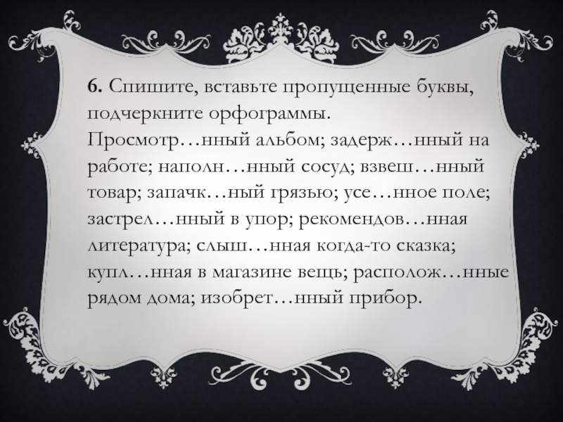 Слайд 136. Спишите, вставьте пропущенные буквы, подчеркните орфограммы.