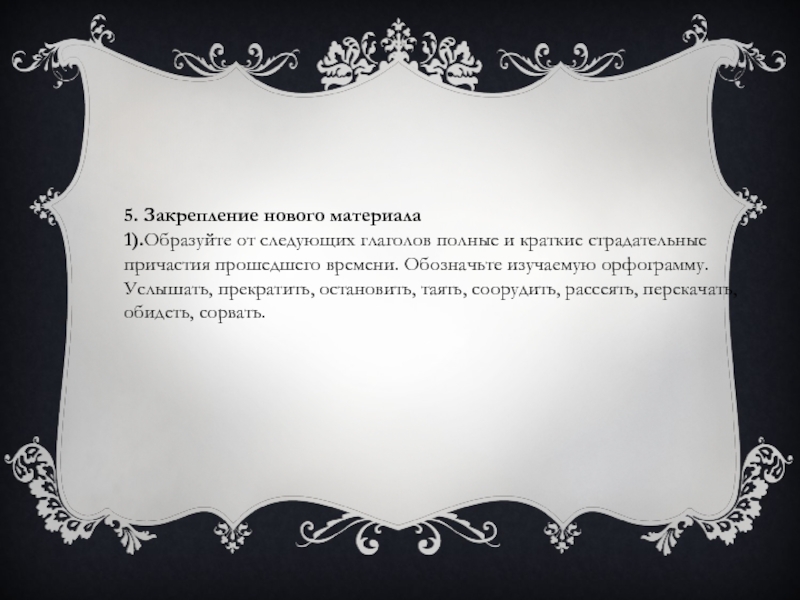 Учащиеся образовывают от данных глаголов страдательные причастия прошедшего