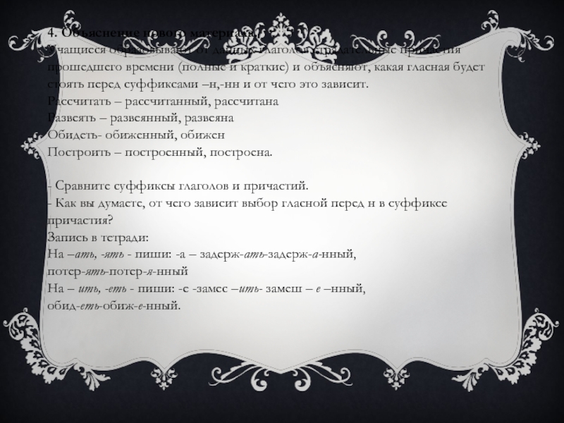 времени (полные и краткие) и объясняют, какая гласная будет стоять перед суффиксами –н,-нн и от чего это зависит.