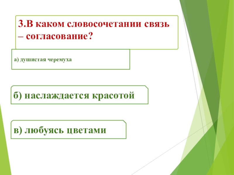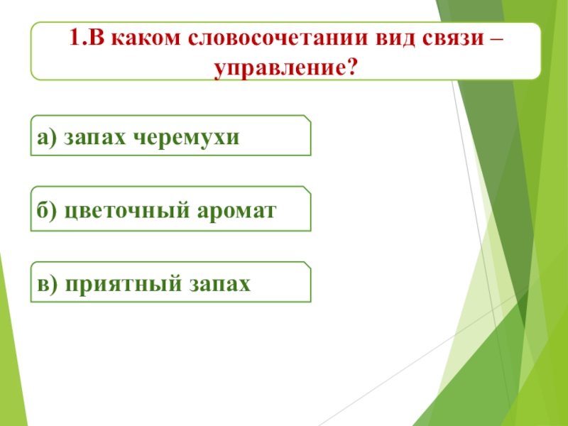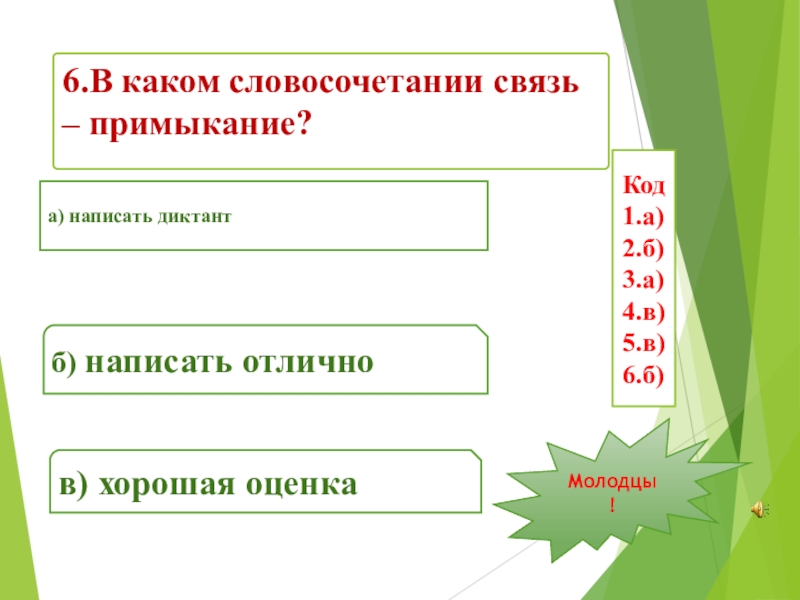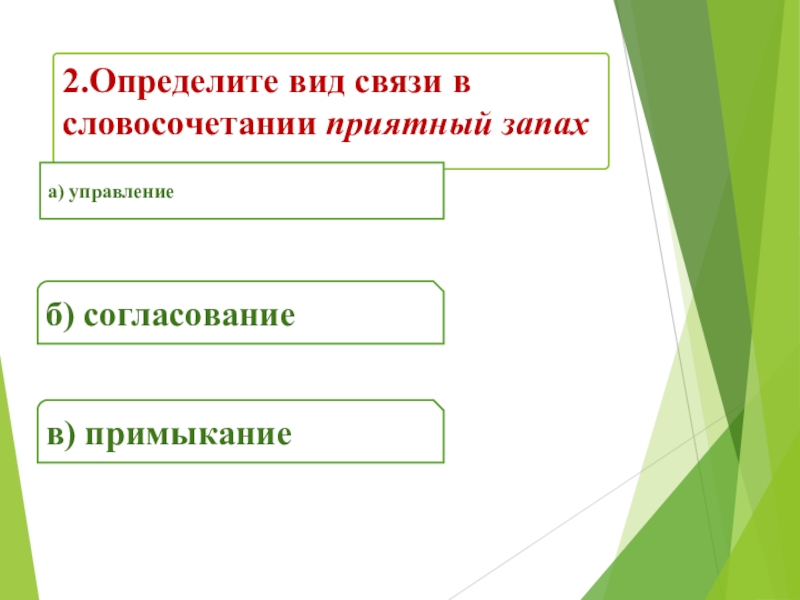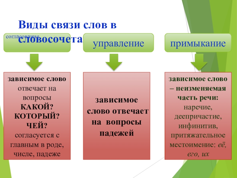 зависимое слово – неизменяемая часть речи: наречие, деепричастие, инфинитив, притяжательное местоимение: её, его, их