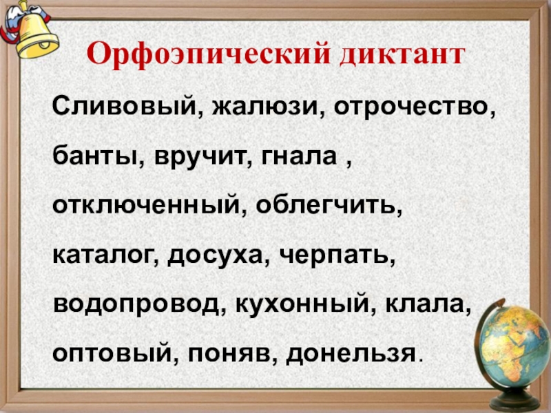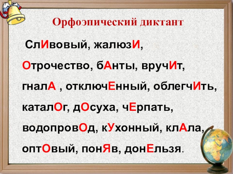 СлИвовый, жалюзИ, Отрочество, бАнты, вручИт, гналА , отключЕнный, облегчИть,