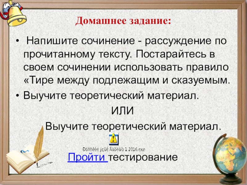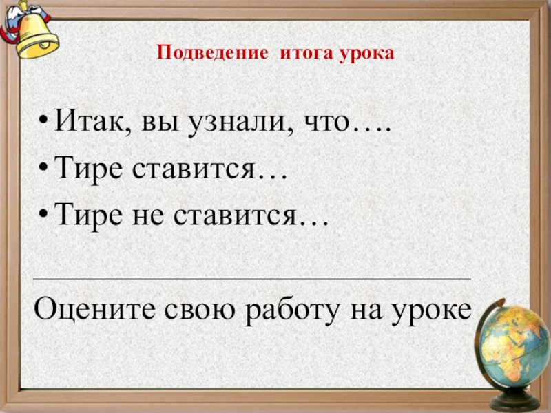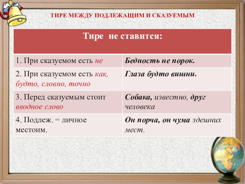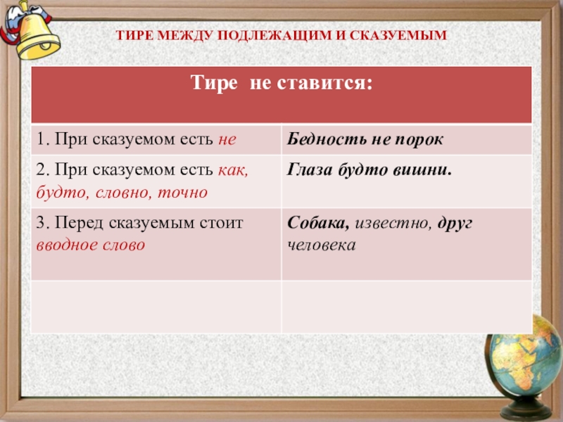 Слайд 13ТИРЕ МЕЖДУ ПОДЛЕЖАЩИМ И СКАЗУЕМЫМ