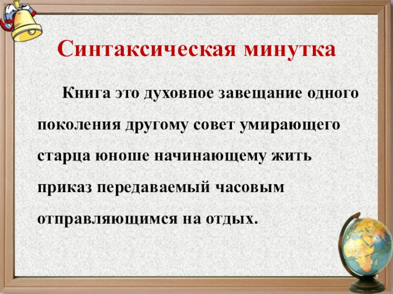 Книга - это духовное завещание одного поколения другому, совет умирающего старца