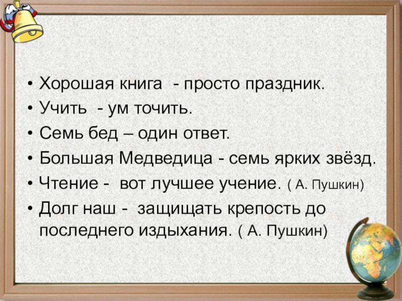 Чтение - вот лучшее учение. ( А. Пушкин)