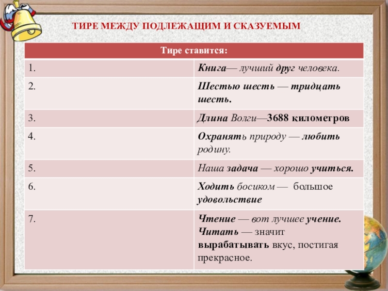 Слайд 11ТИРЕ МЕЖДУ ПОДЛЕЖАЩИМ И СКАЗУЕМЫМ
