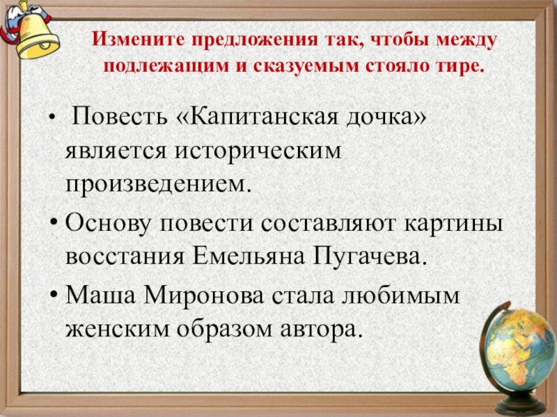Слайд 16Измените предложения так, чтобы между подлежащим и сказуемым стояло тире.