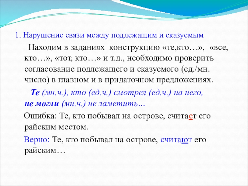 Слайд 41. Нарушение связи между подлежащим и сказуемым