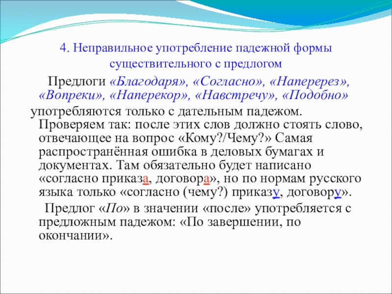 - неправильное употребление падежной