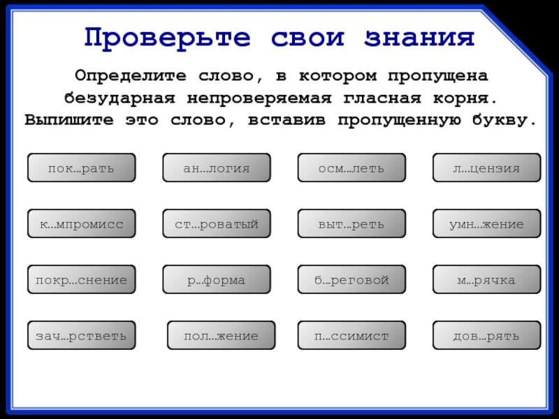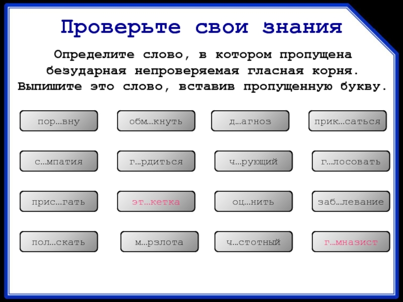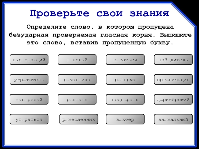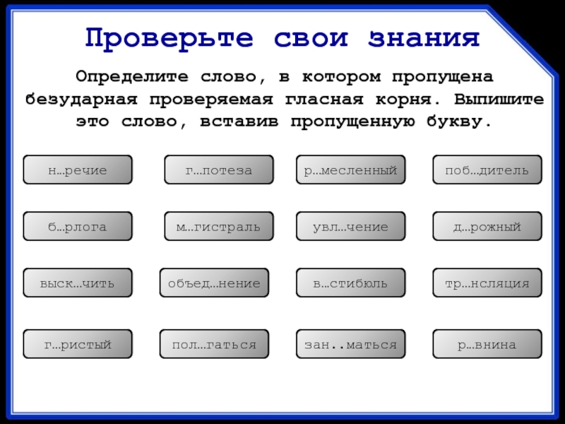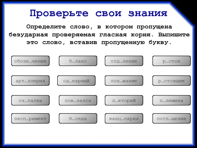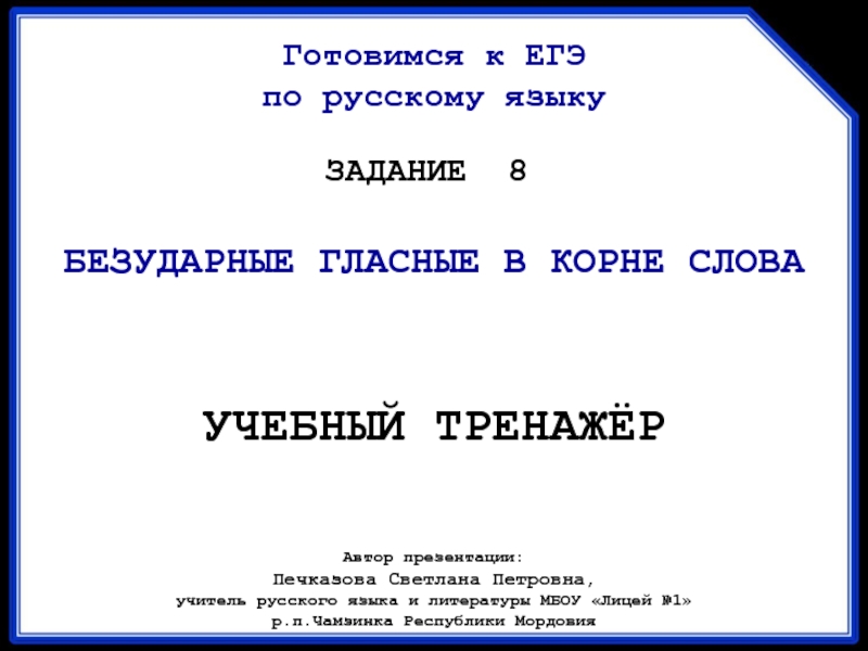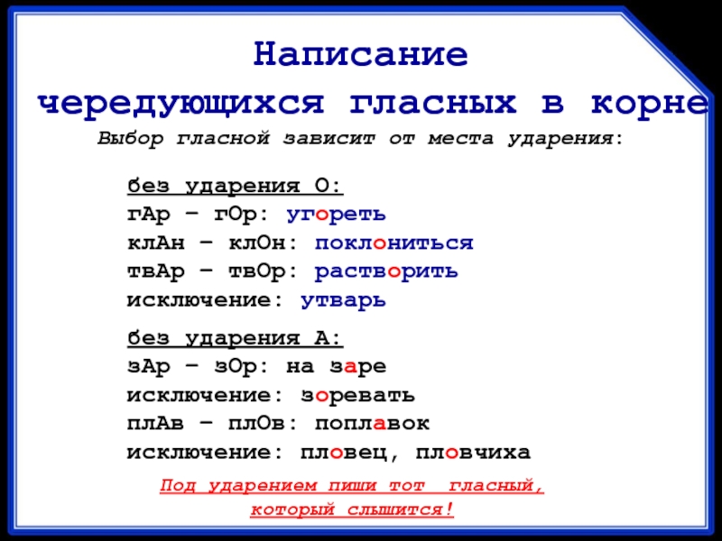 БЕЗУДАРНЫЕ ГЛАСНЫЕ В КОРНЕ СЛОВА