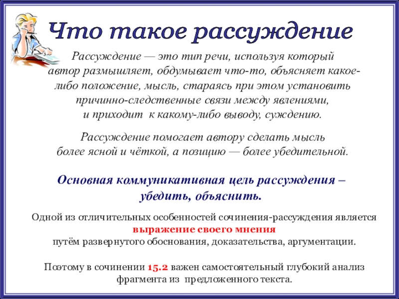Учимся писать сочинение – рассуждение 15.2