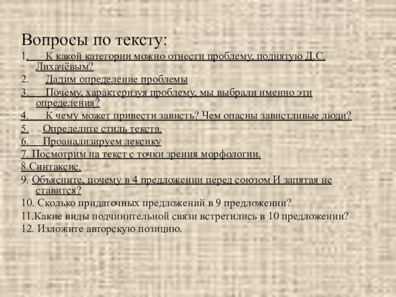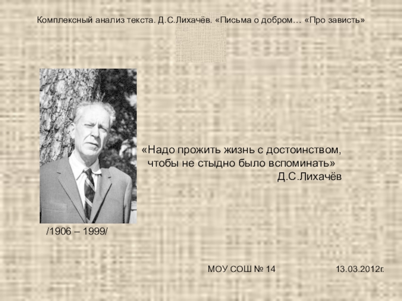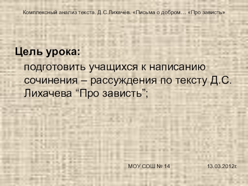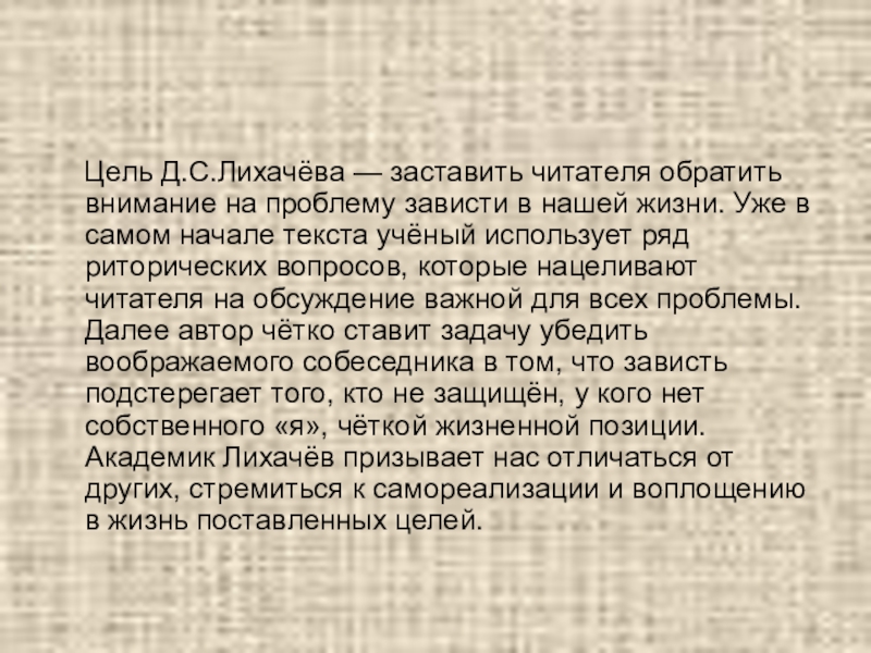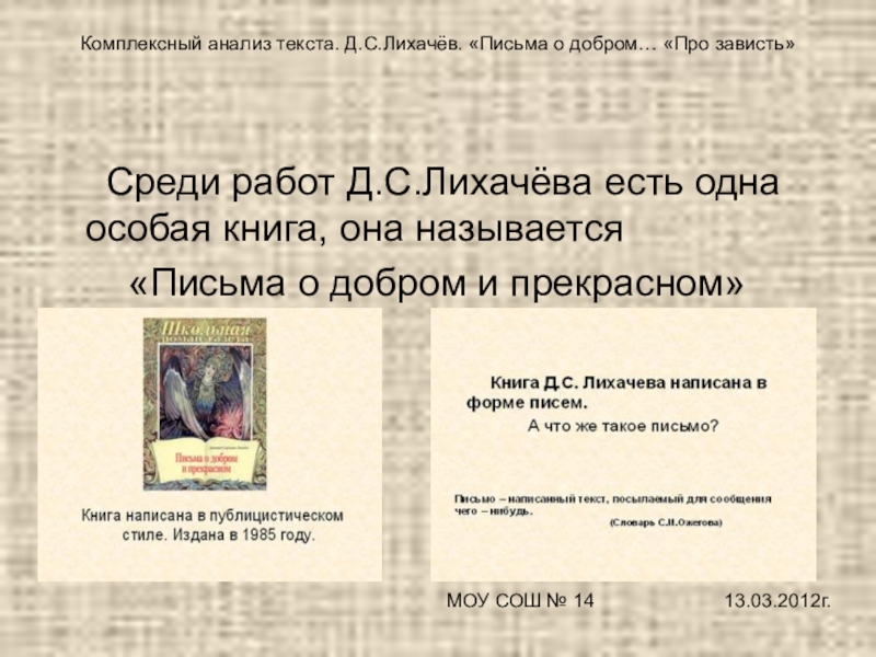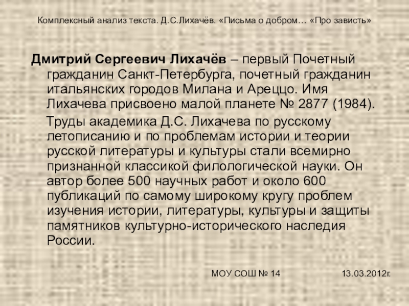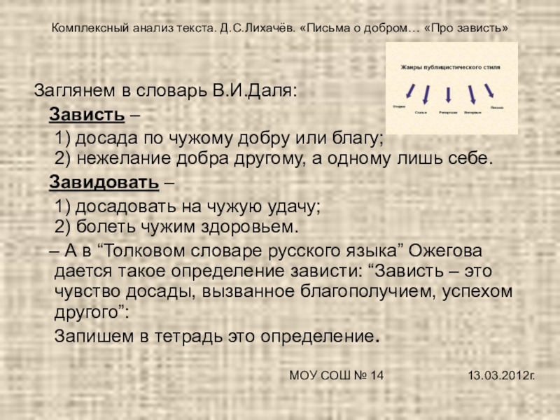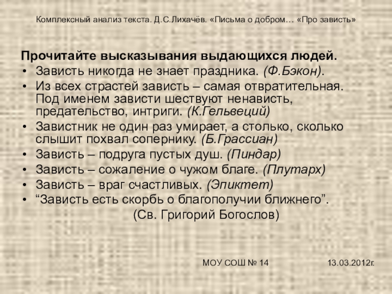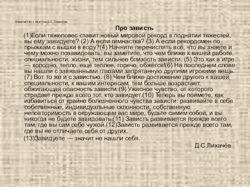 Комплексный анализ текста. Д.С.Лихачёв. «Письма о добром… «Про зависть»
