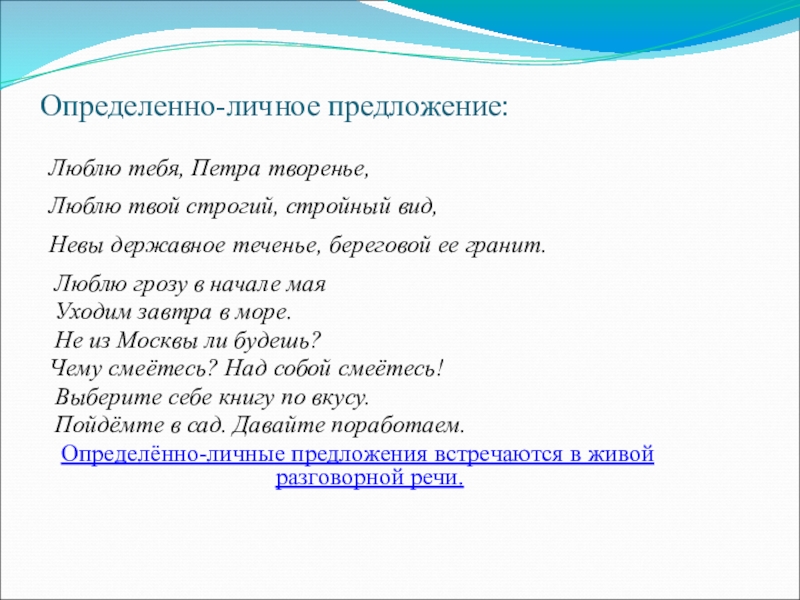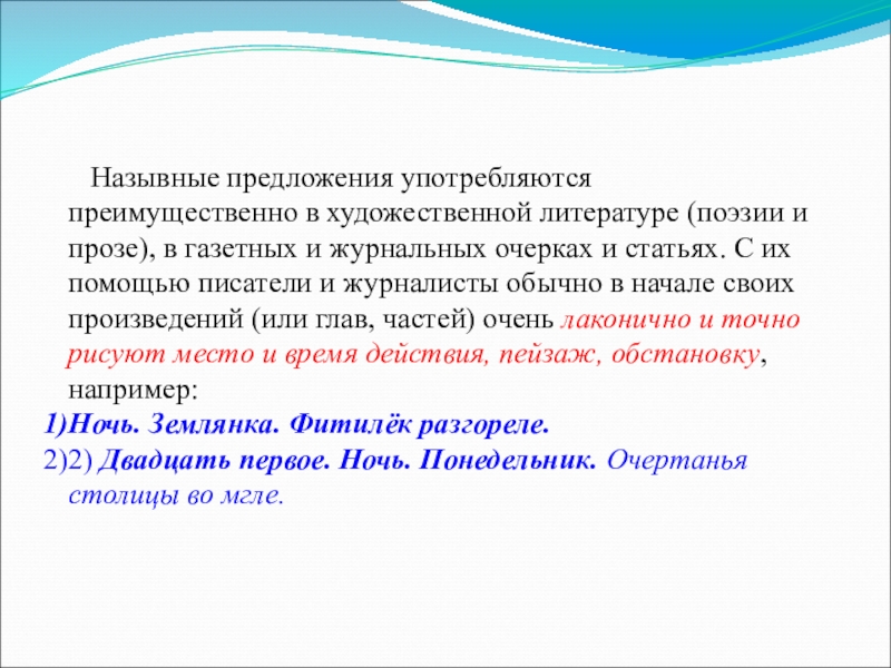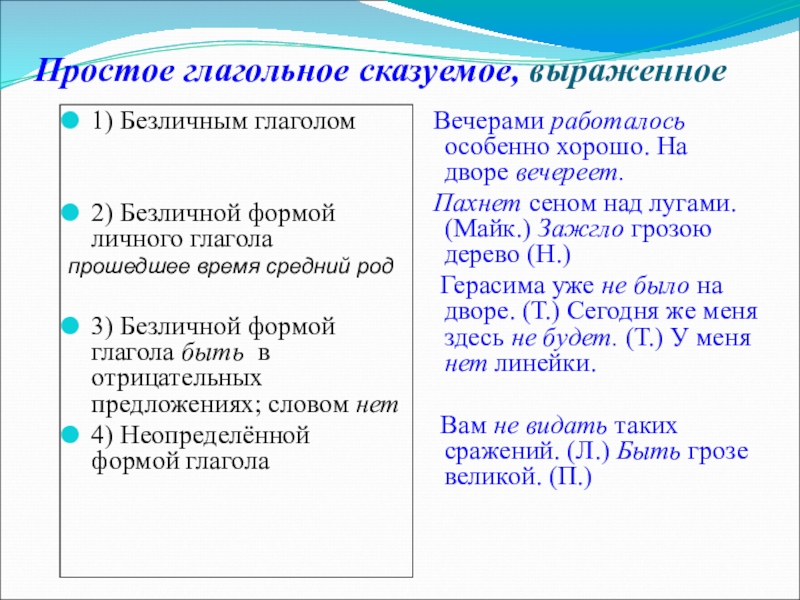 Пахнет сеном над лугами. (Майк.) Зажгло грозою дерево (Н.)
