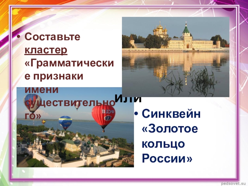 илиСоставьте кластер «Грамматические признаки имени существительного»Синквейн «Золотое кольцо России»