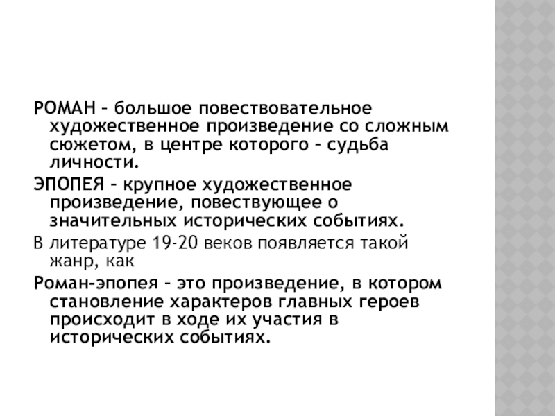Слайд 3РОМАН – большое повествовательное художественное произведение со сложным сюжетом, в центре