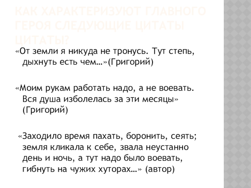 Слайд 8Как характеризуют главного героя следующие цитаты цитаты?