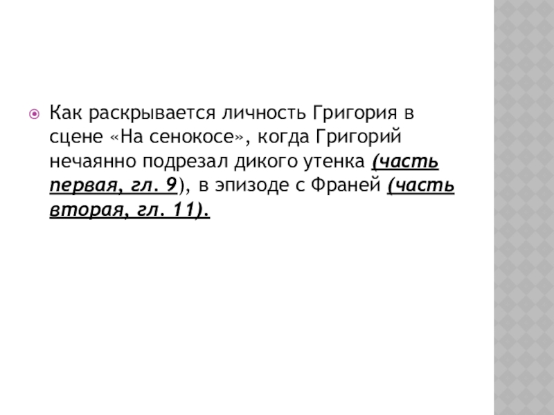Слайд 7Как раскрывается личность Григория в сцене «На сенокосе», когда Григорий нечаянно