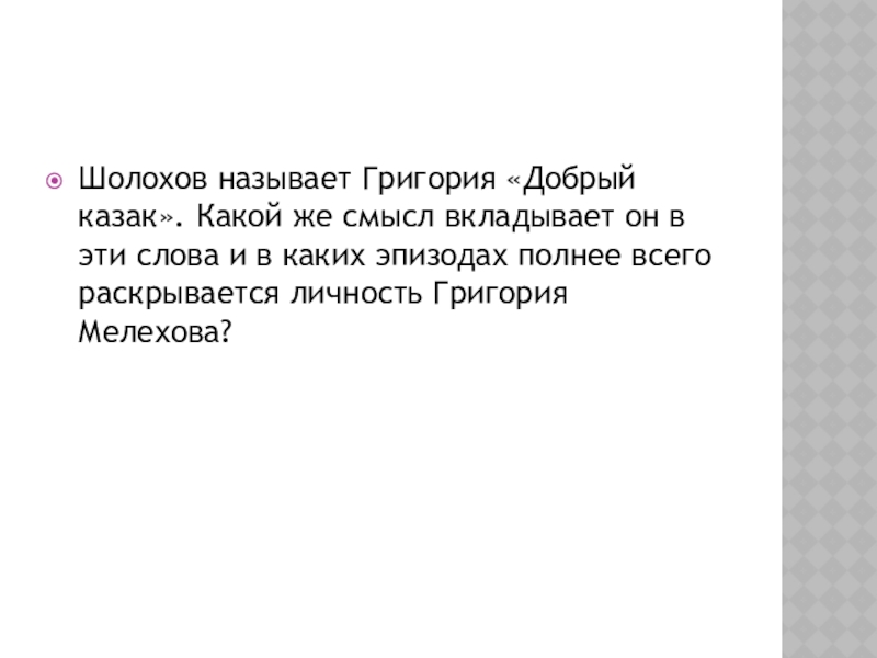 Слайд 6Шолохов называет Григория «Добрый казак». Какой же смысл вкладывает он в