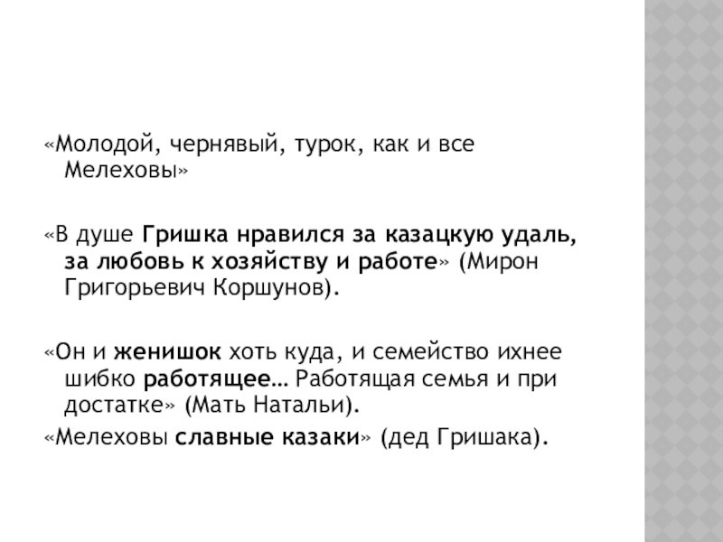 Слайд 5«Молодой, чернявый, турок, как и все Мелеховы»