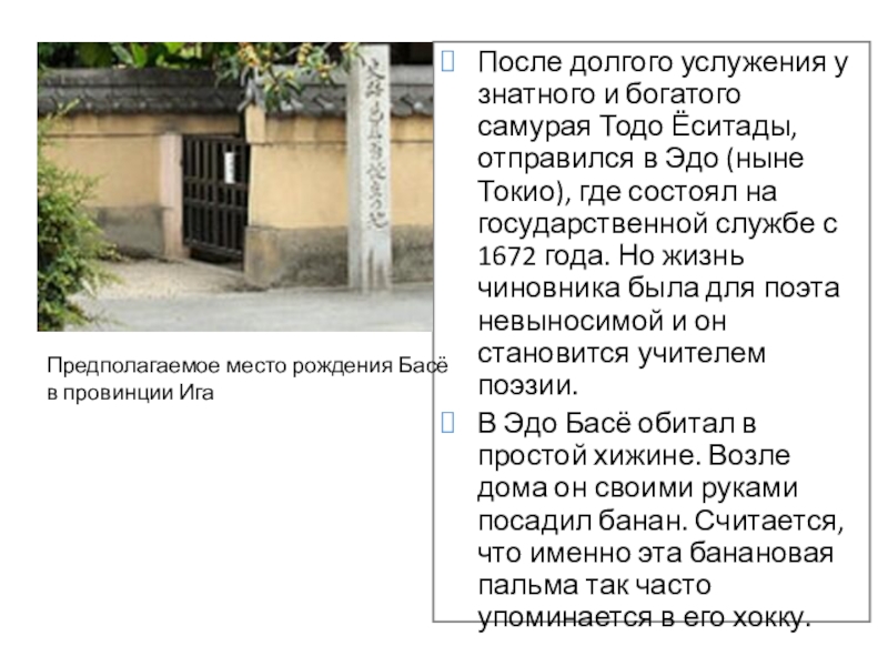 Предполагаемое место рождения Басё в провинции Ига