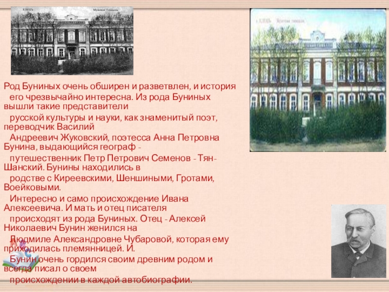Слайд 5Род Буниных очень обширен и разветвлен, и история