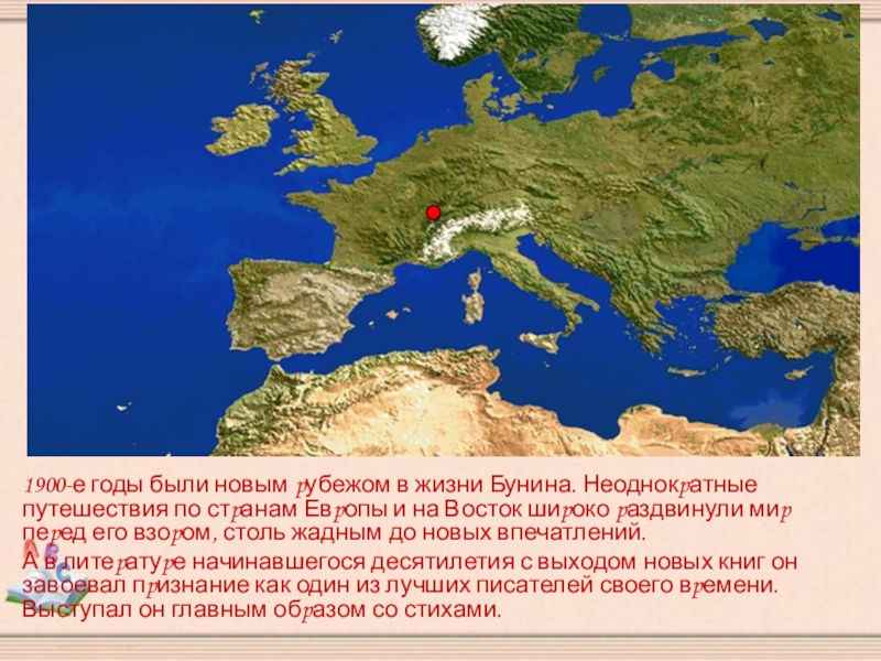 Слайд 221900-е годы были новым pубежом в жизни Бунина. Неоднокpатные путешествия по