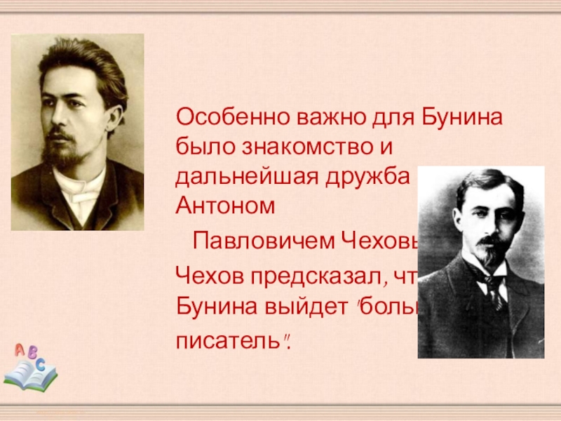 Слайд 16Особенно важно для Бунина было знакомство и дальнейшая дружба с Антоном