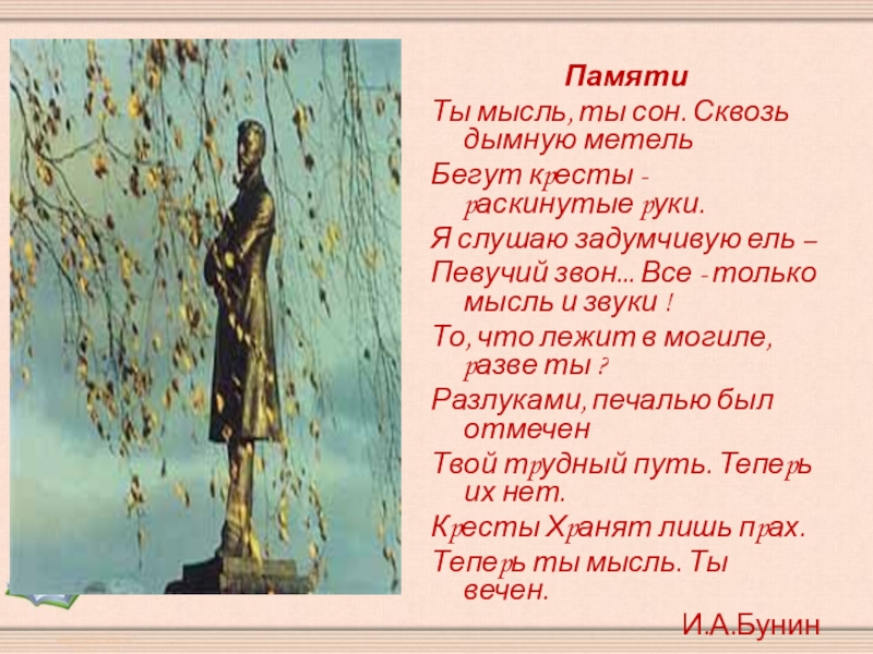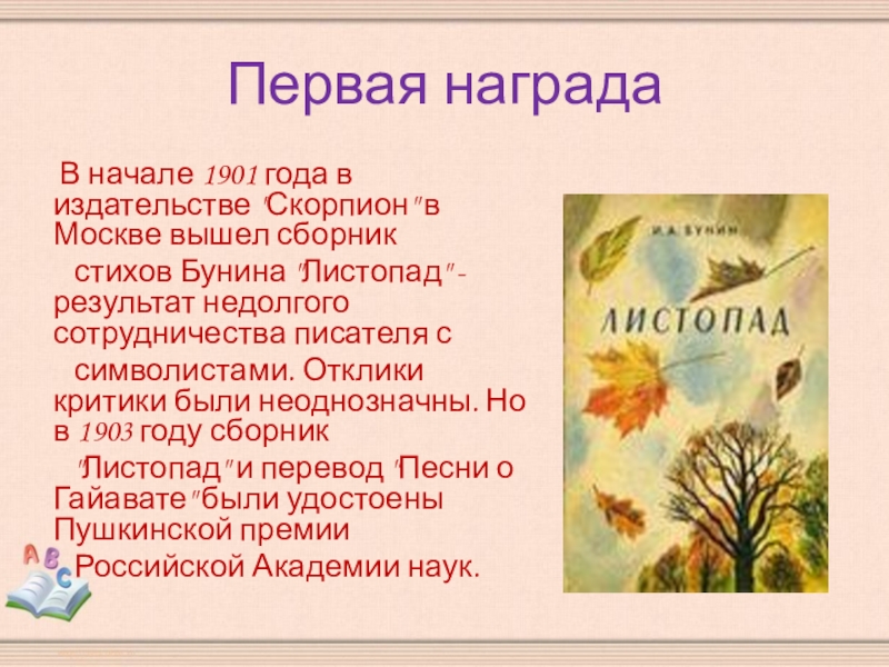 стихов Бунина "Листопад" - результат недолгого сотрудничества писателя с