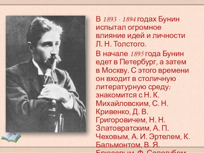 В 1893 - 1894 годах Бунин испытал огромное влияние идей и
