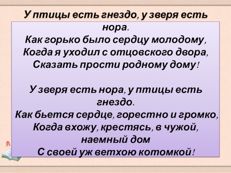 Слайд 4У птицы есть гнездо, у зверя есть нора.
