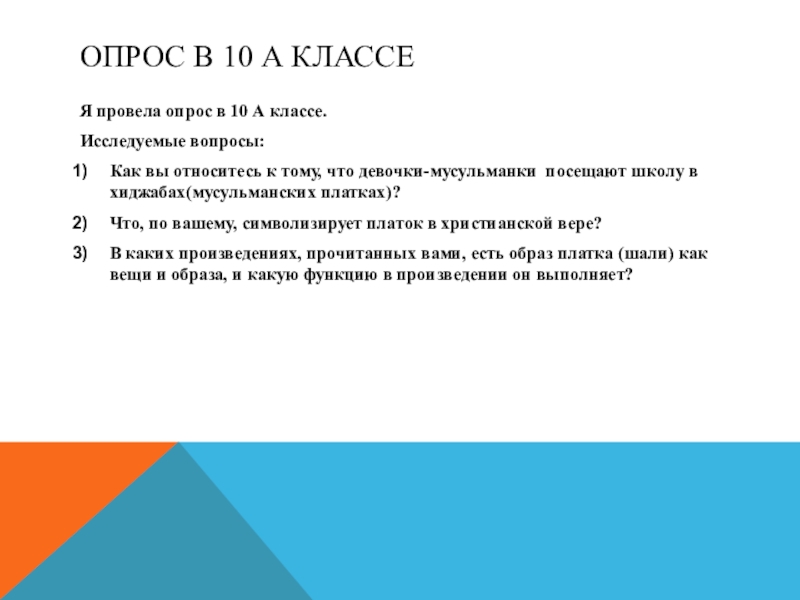 Слайд 7ОПРОС В 10 А КЛАССЕ