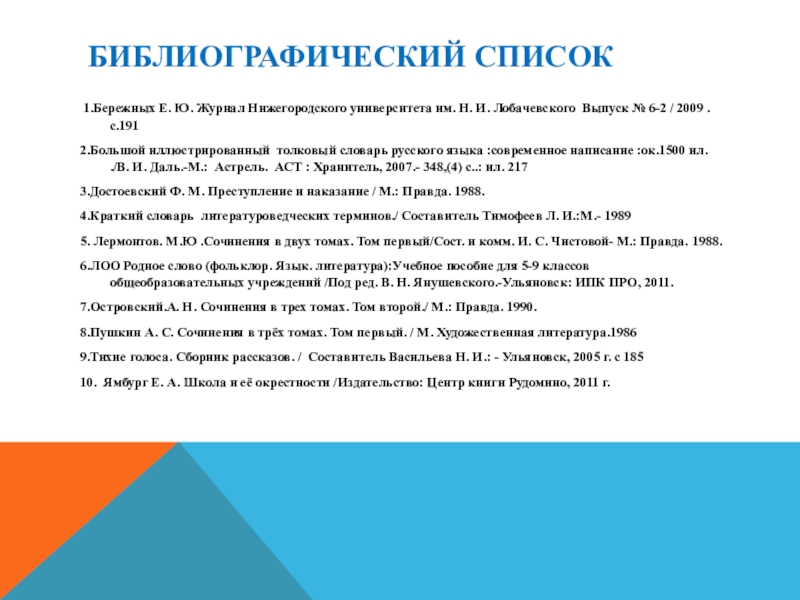 Слайд 29 БИБЛИОГРАФИЧЕСКИЙ СПИСОК