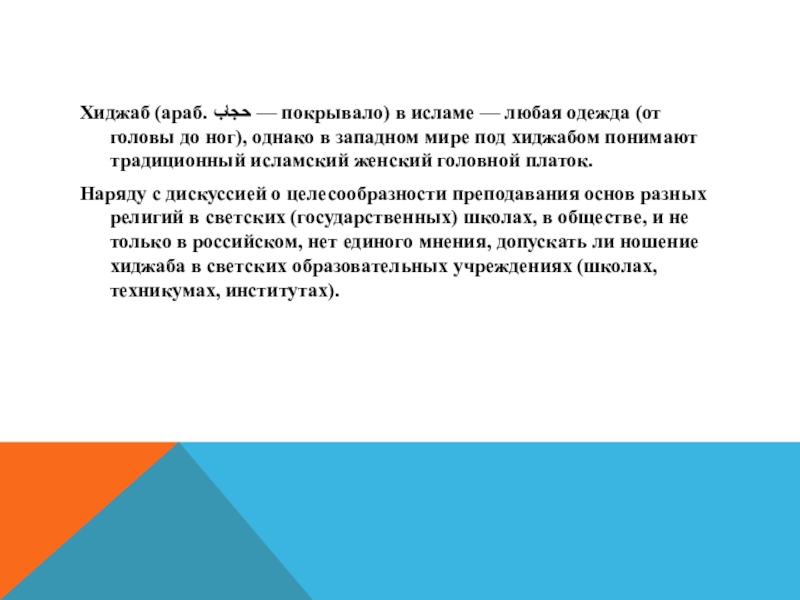 Хиджаб (араб. حجاب — покрывало) в исламе — любая одежда (от