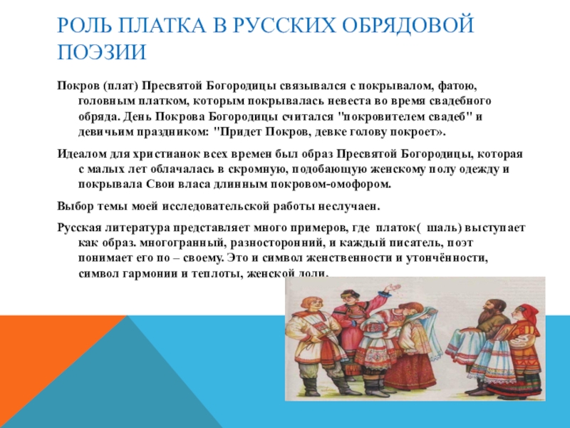 Слайд 14РОЛЬ ПЛАТКА В РУССКИХ ОБРЯДОВОЙ ПОЭЗИИ