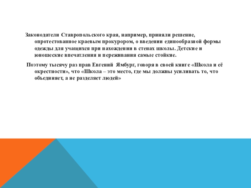 единообразной формы одежды для учащихся при нахождении в стенах школы. Детские и юношеские впечатления и переживания самые стойкие.