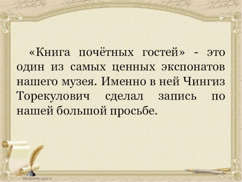 Слайд 32 «Книга почётных гостей» - это один из самых ценных экспонатов нашего