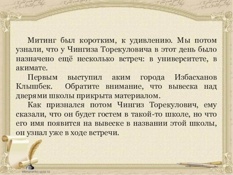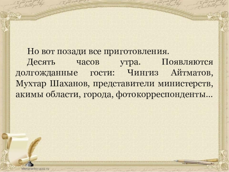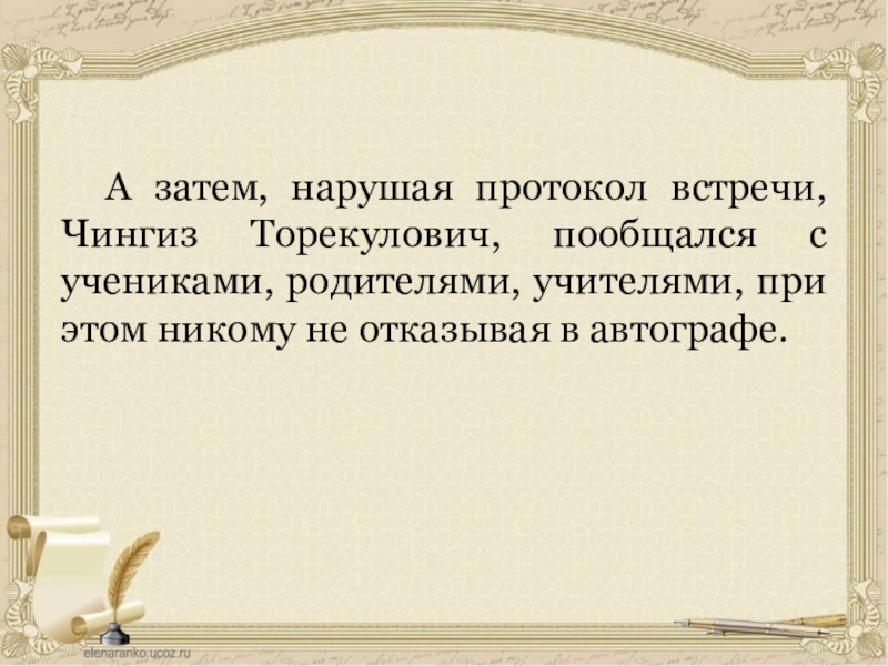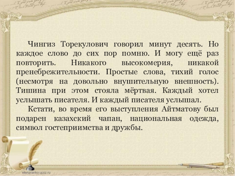 Слайд 20 Чингиз Торекулович говорил минут десять. Но каждое слово до сих пор