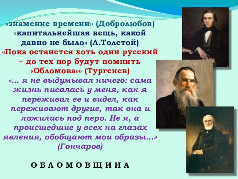 один русский – до тех пор будут помнить «Обломова»» (Тургенев)