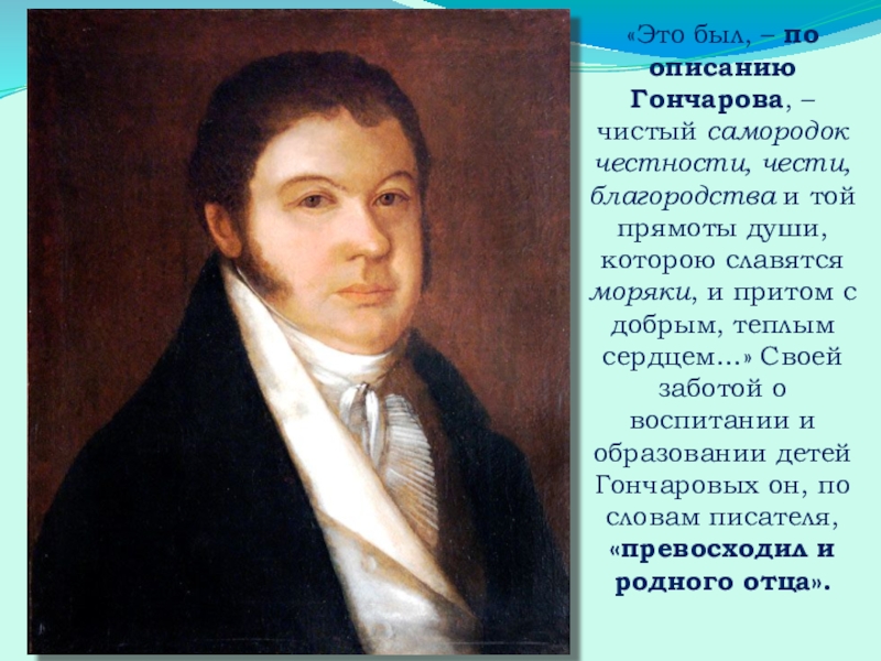 Слайд 7«Это был, – по описанию Гончарова, – чистый самородок честности, чести,
