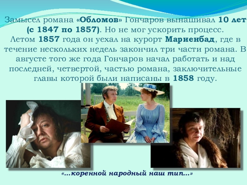 Слайд 21Замысел романа «Обломов» Гончаров вынашивал 10 лет (с 1847 по 1857).