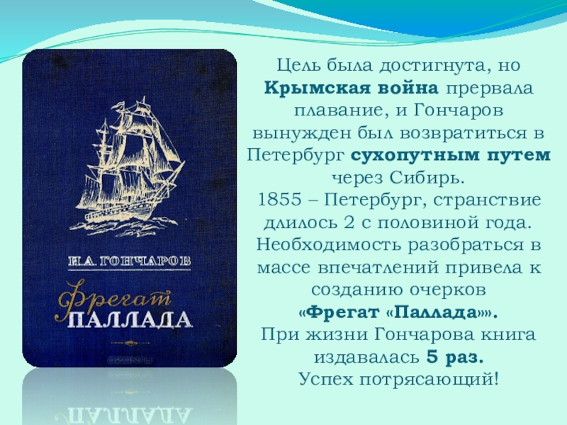 Слайд 19Цель была достигнута, но Крымская война прервала